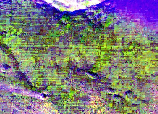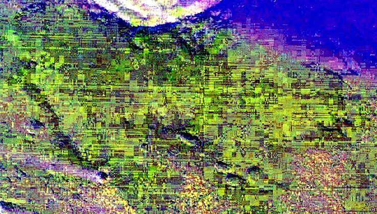 (A)の画像の一部を拡大した幅30Kmの地域から建造物を検出したものです。 |