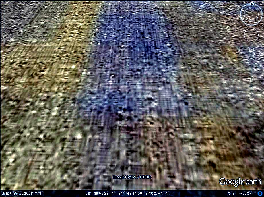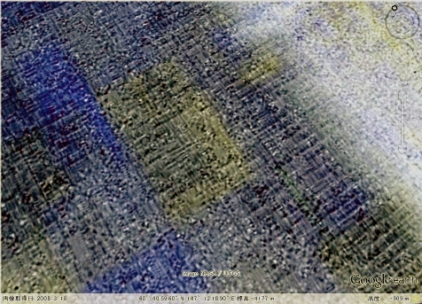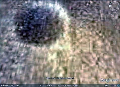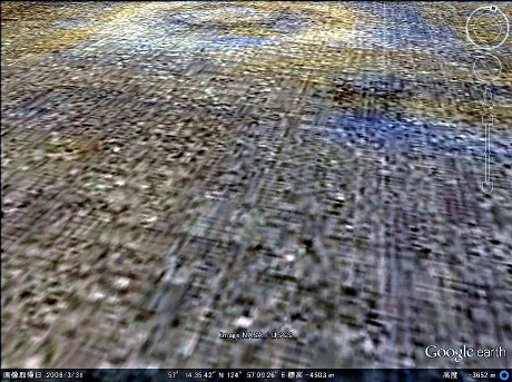 【拡大画像D】 クレータは楕円形になっており縦2km、幅1.5km位の大きさで構造物はクレータ内までびっしりと建っているように見えます。 |