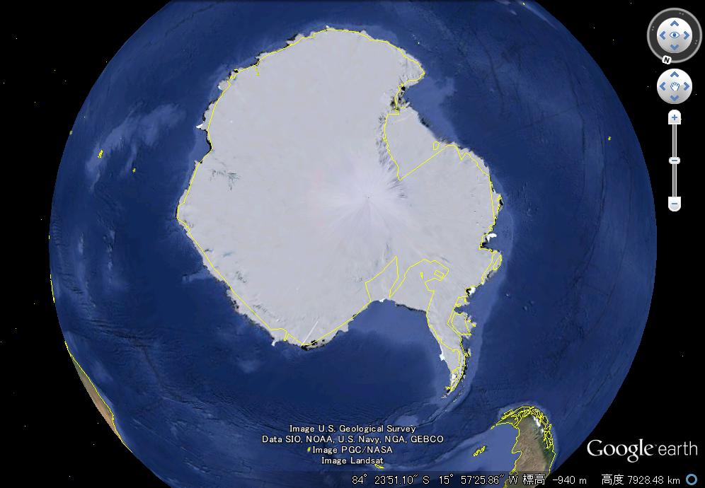 地球の南極大陸の上空、約8000Kmからの眺めです。南極大陸の幅は縦横約5000Km。