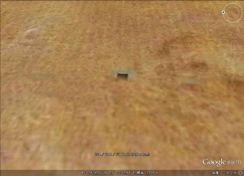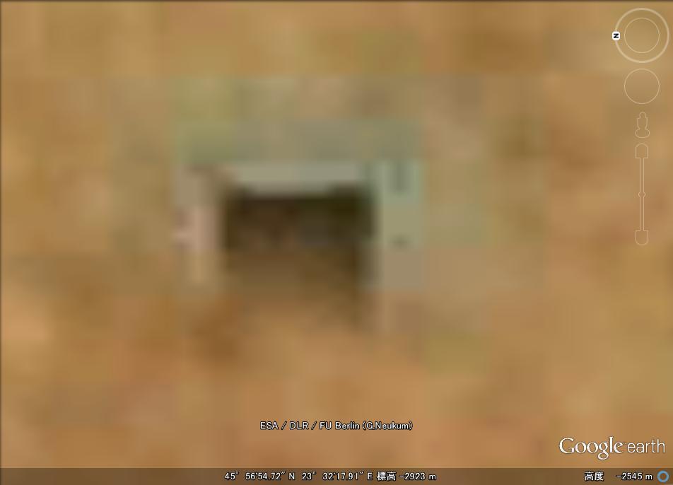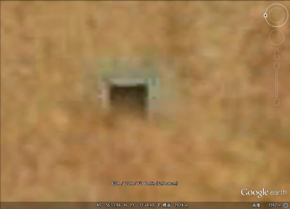 地下への出入り口のように見える構造物は幅150m、高さ100mとかなり大きなものです。ここから小型のUFOなどが出入りしているのか。 |