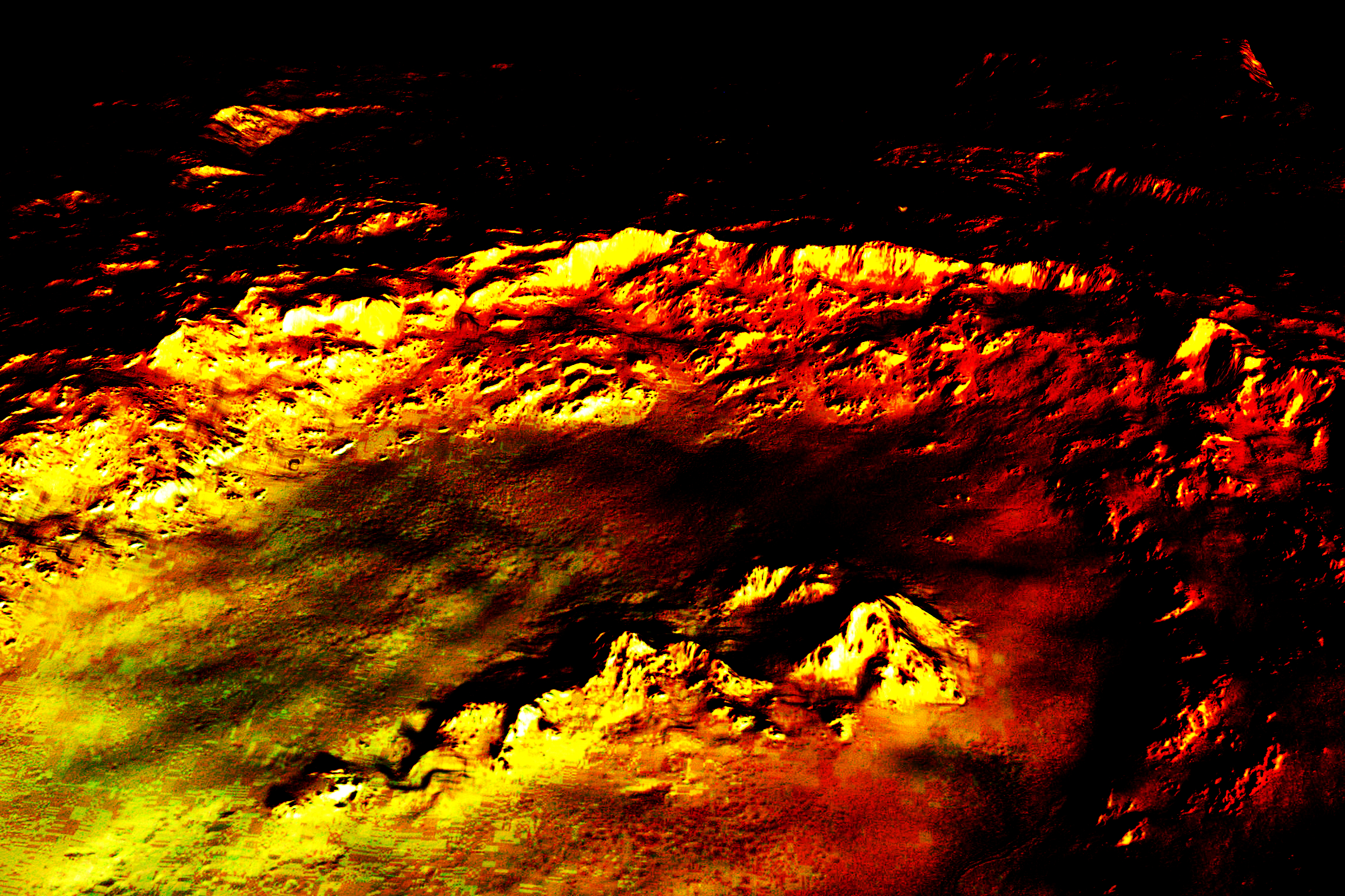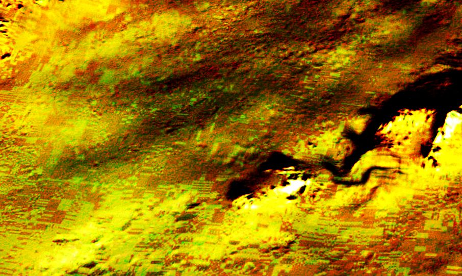 【構造物検出方法】【1】 上記【7】で保存したファイルをフリーソフトのPixiaで開く。 【2】メニューから画像を選択し明るさとコントラストをクリックする。 【3】適当に明るさを暗くしコントラストを強調する。 【4】ファイル名を付け拡張子はjpgで保存する。 Source: ESA-DLR-FU http://esamultimedia.esa.int/images/marsexpress/137-021104-0533-6-3d2-01-HaleCrater_H.jpg 【 Mars Longitude 324°E Latitude 36.5°S 】 |