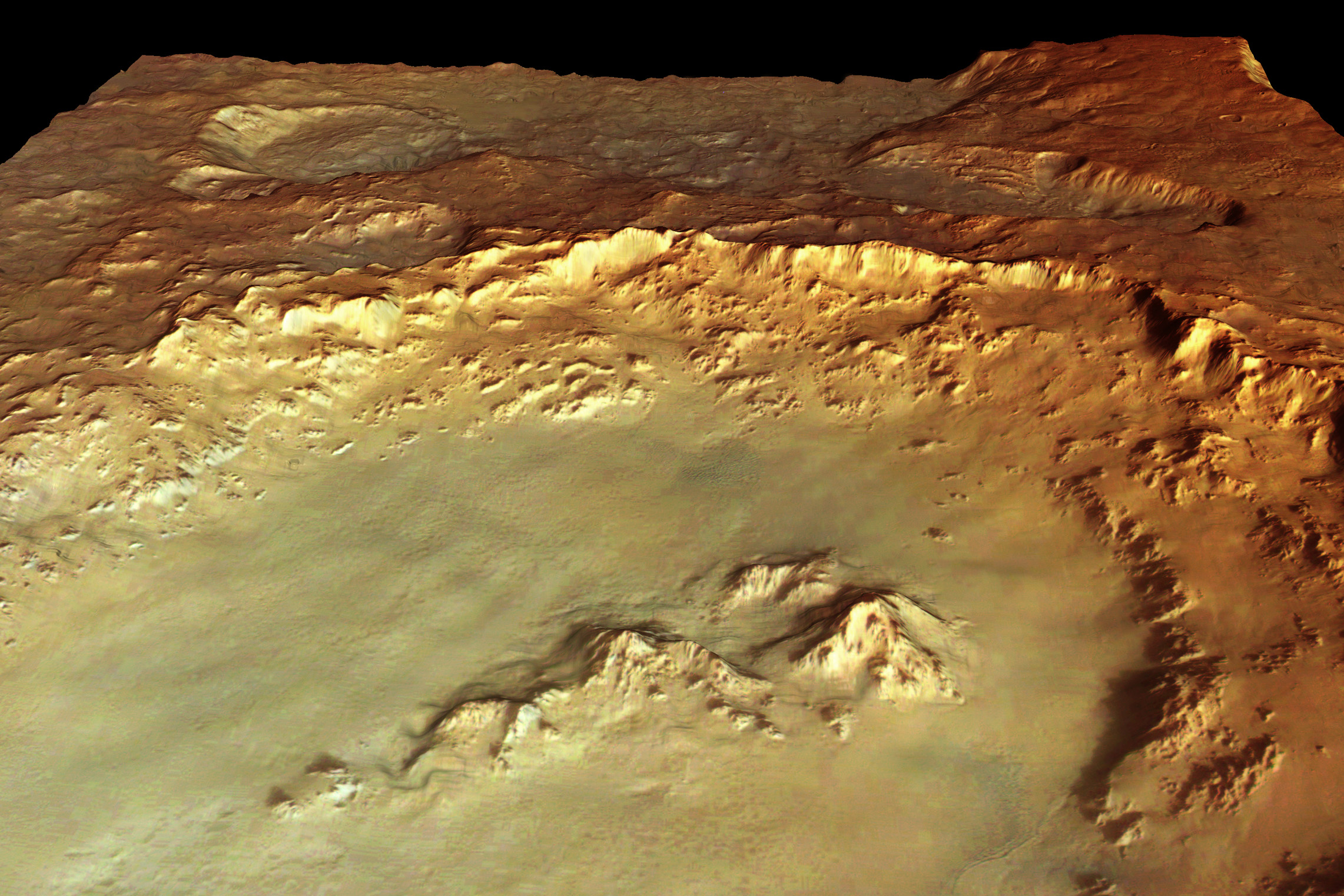 【火星構造物ファイル取得方法具体例】【1】 http://www.esa.int/ アクセスする。 【2】Multimedia SectionのメニューからMars facts & imagesをクリックする。 【3】ページ左側のMultimediaメニューからMars Express imagesをクリックする。 【4】images multimedia gallery画面の右上のキーワードにhaleを入力して検査する。 【5】Creater Haleの映像下のHi-resをクリックする。 【6】画像使用条件が表示されるので画面したのI Acceptを選択する。 【7】目的の映像が表示されるので名前と付けて画像保存を選択し保存する。 Source: ESA-DLR-FU http://esamultimedia.esa.int/images/marsexpress/137-021104-0533-6-3d2-01-HaleCrater_H.jpg 【 Mars Longitude 324°E Latitude 36.5°S 】 |