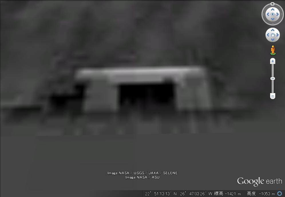高度3700mからの眺めですが、何かの出入り口のような開口部が見えます。 |