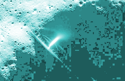 上の画層を更に拡大すると中央が太い棒状のプラットフォームから放電のような強い光が発生していますが、奥にも複数の同様な光が見えます。発電装置でUFOや施設にエネルギーを供給しているのでしょうか。 |