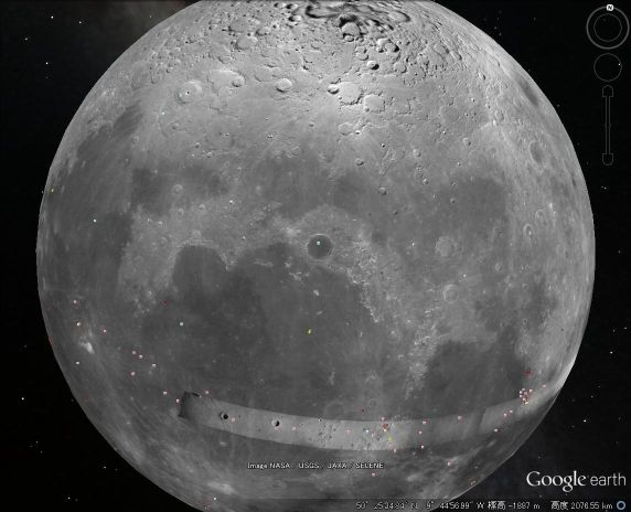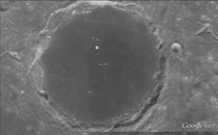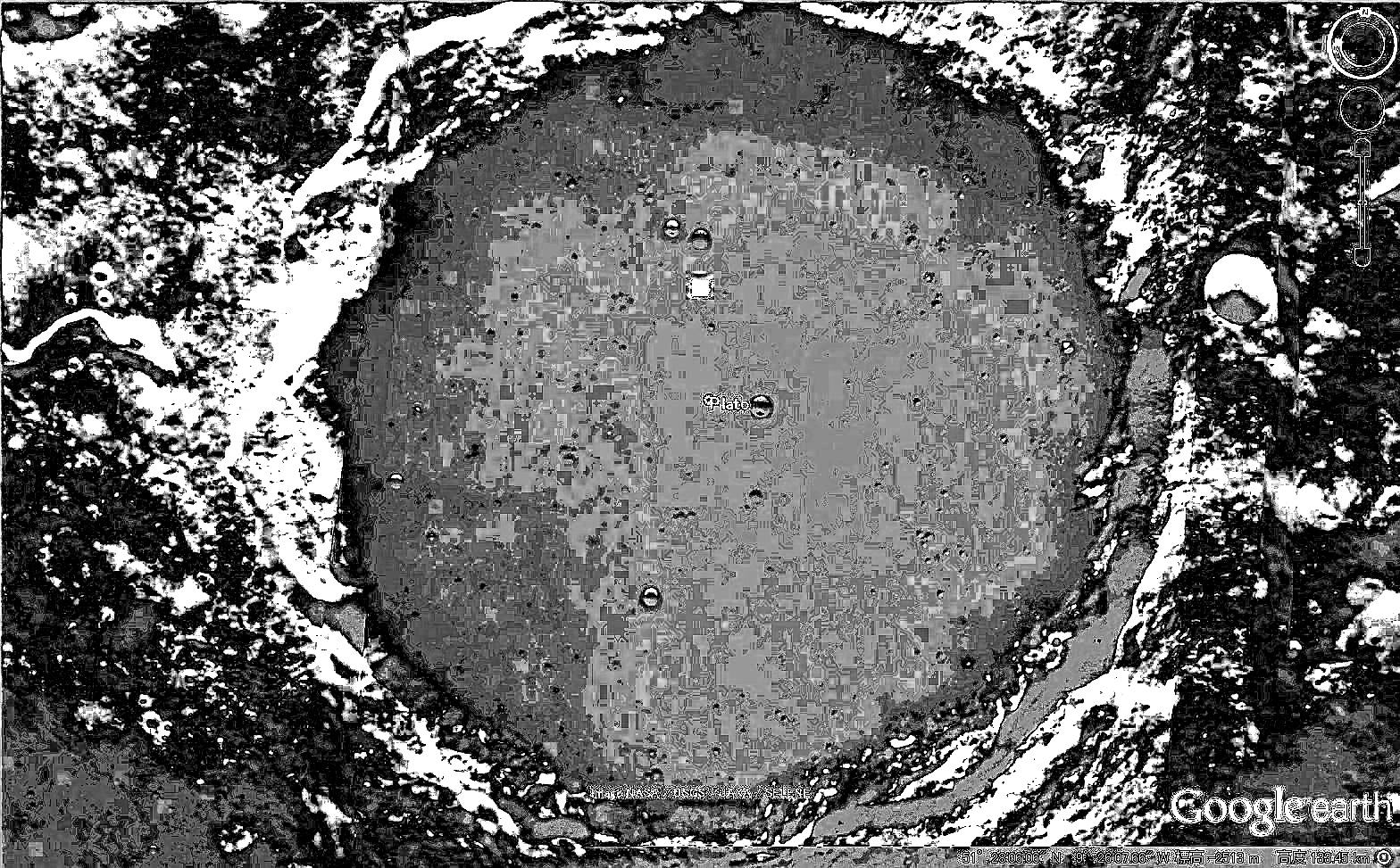 中央の円形のクレーターがPlatoで直径は約95Kmになります。 |